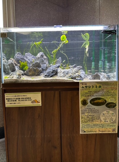 本日11時に埼玉県より報道発表がありましたが、この度埼玉県の「ネイチャーポジティブ」推進における活動の1つとして、県庁内に県の魚「ムサシトミヨ」を展示する試みがスタートしました。